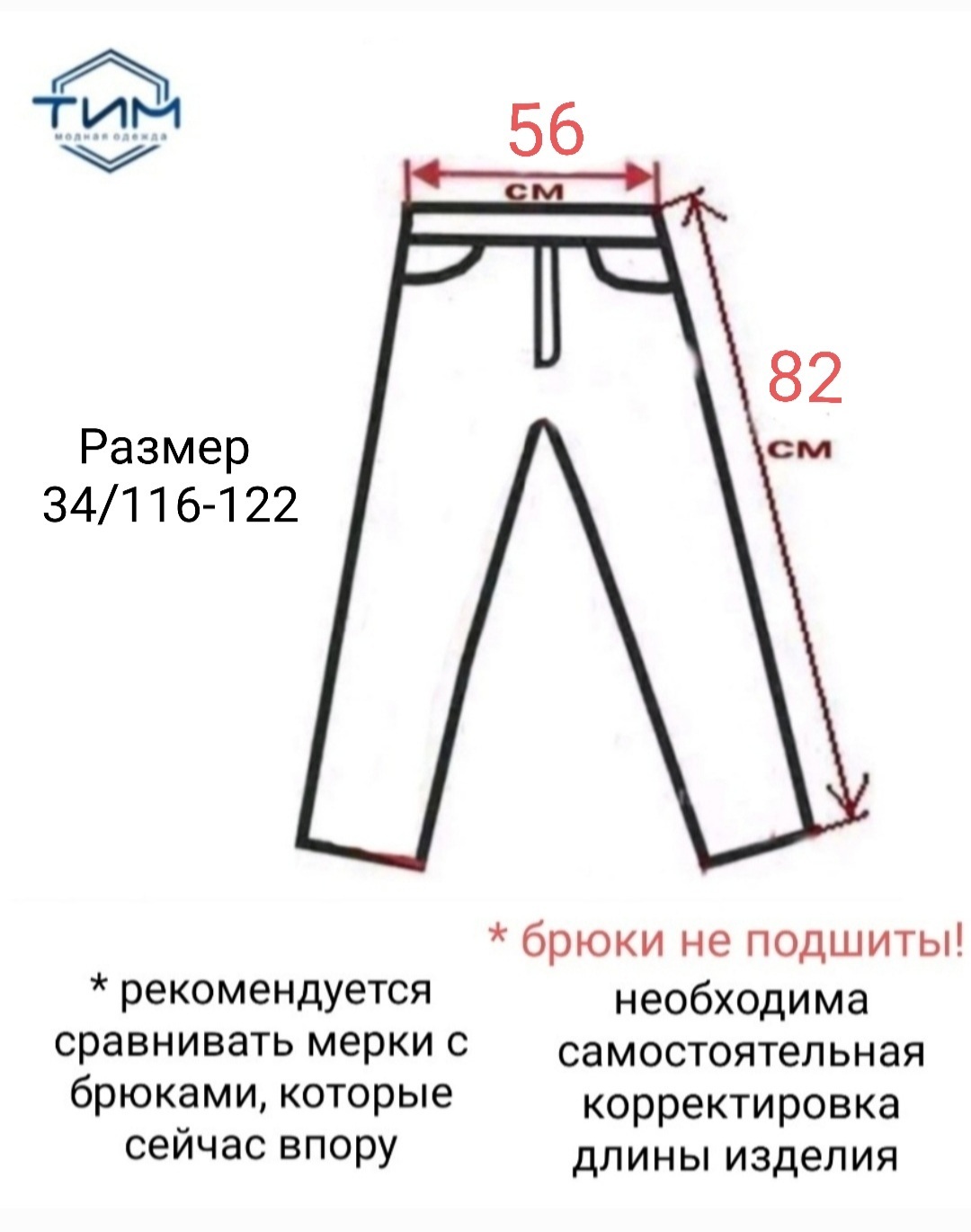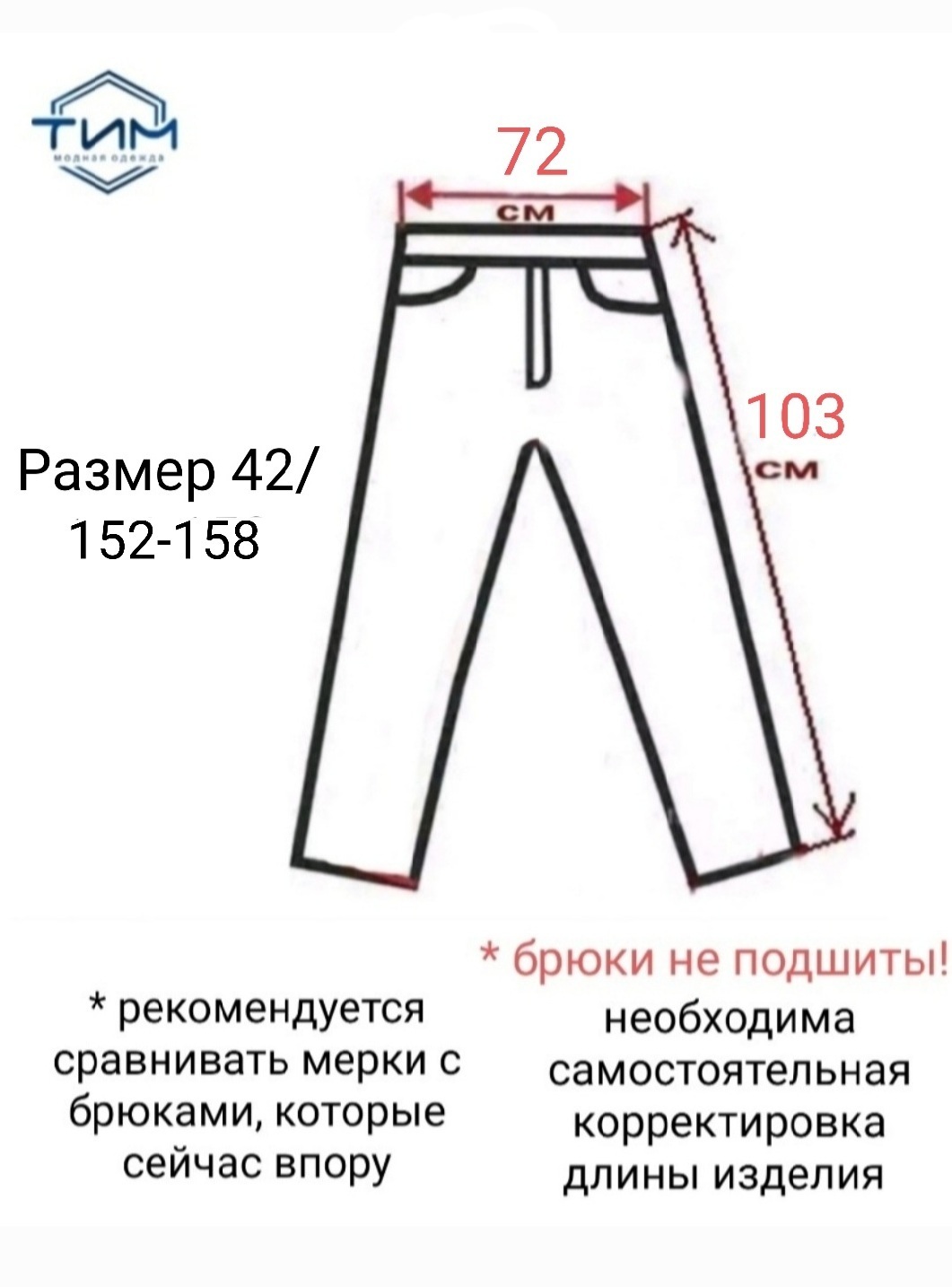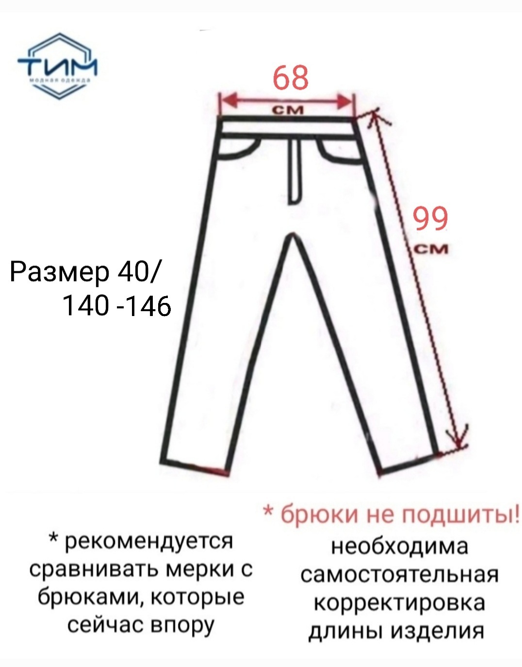 Брюки не подшиты, необходима самостоятельная коррекция длины изделия.