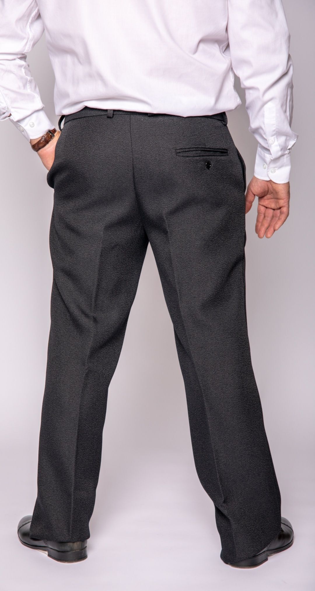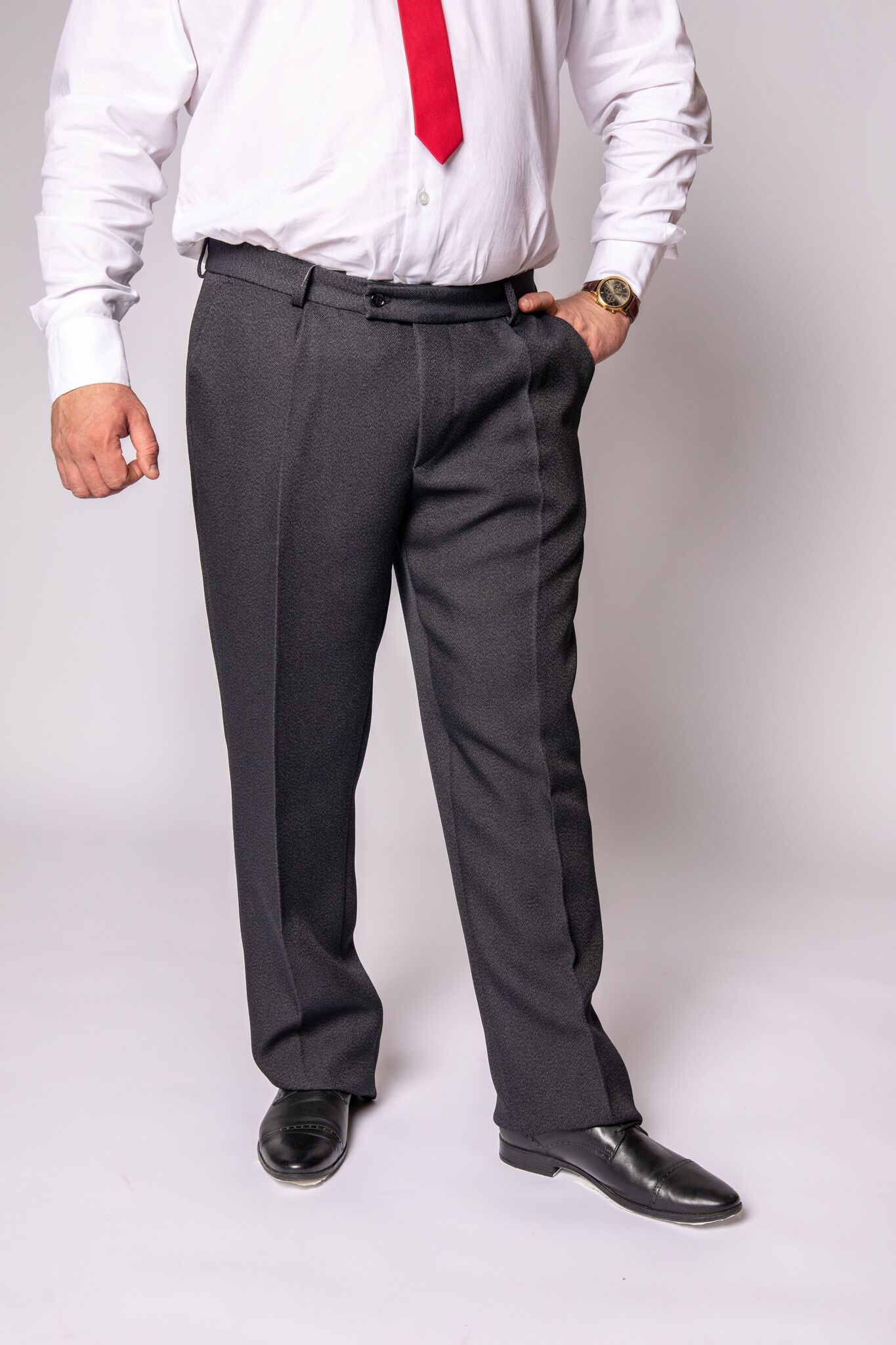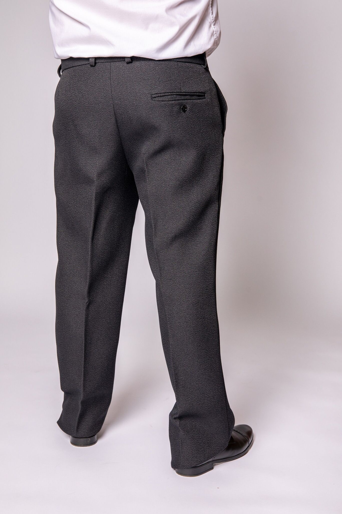 Строгие классические мужские брюки прямого покроя из плотной костюмной полушерстяной ткани для холодного времени года.