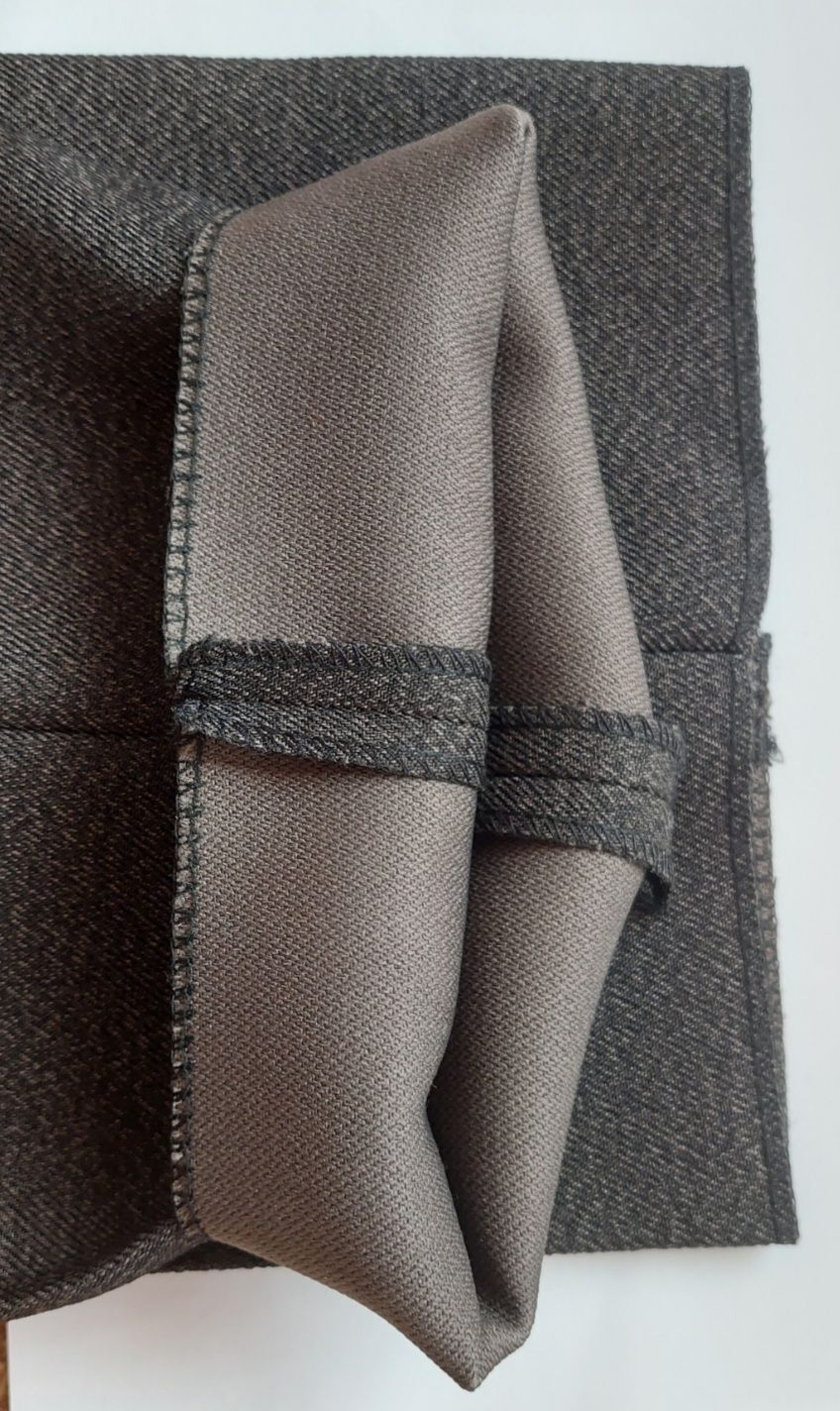 Очень практичная, приятная к телу ткань в рубчик имеет рисунок "мелкой ряби", цвет приятный, немаркий. Брюки смотрятся нарядно и держат форму.