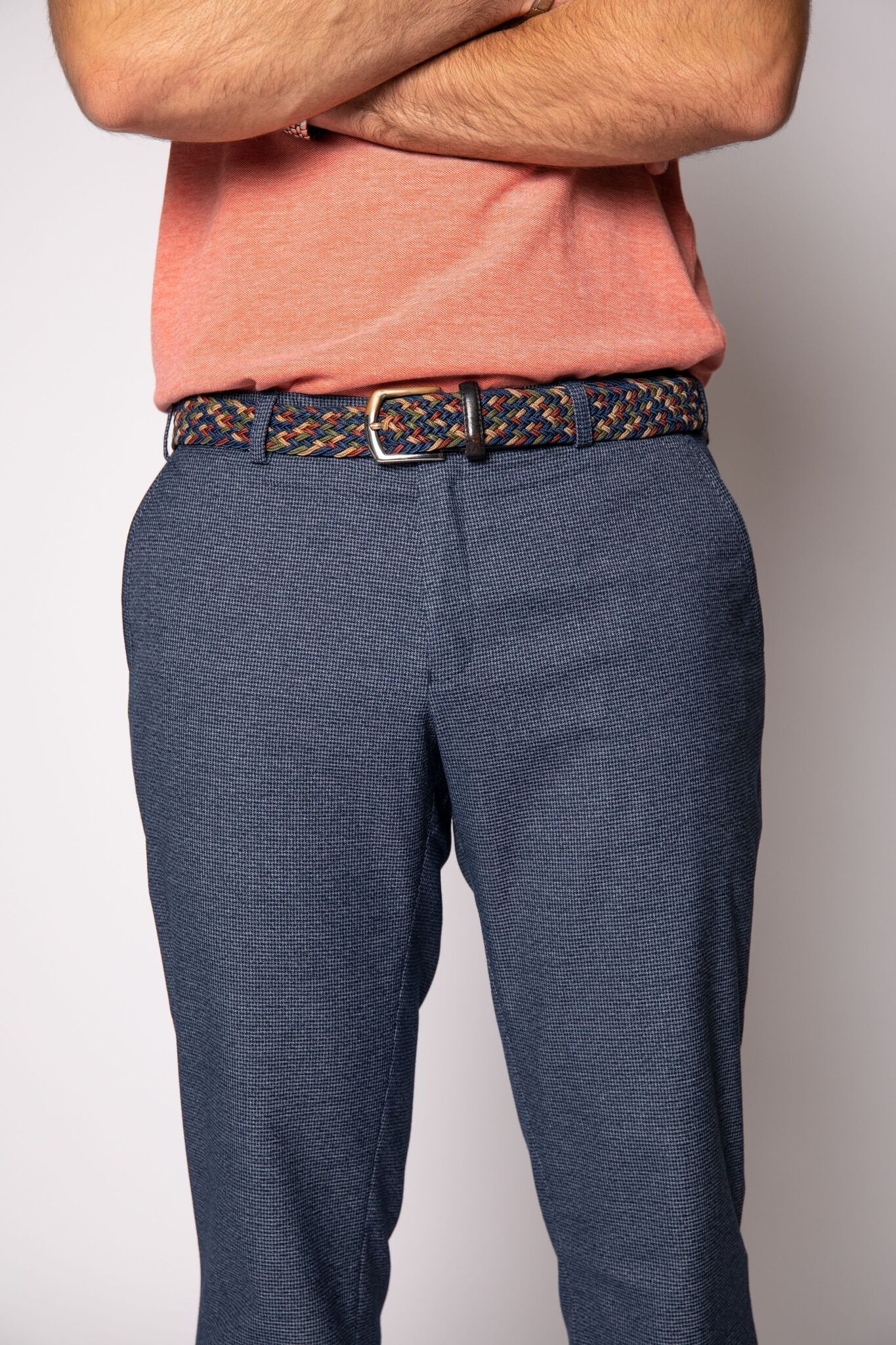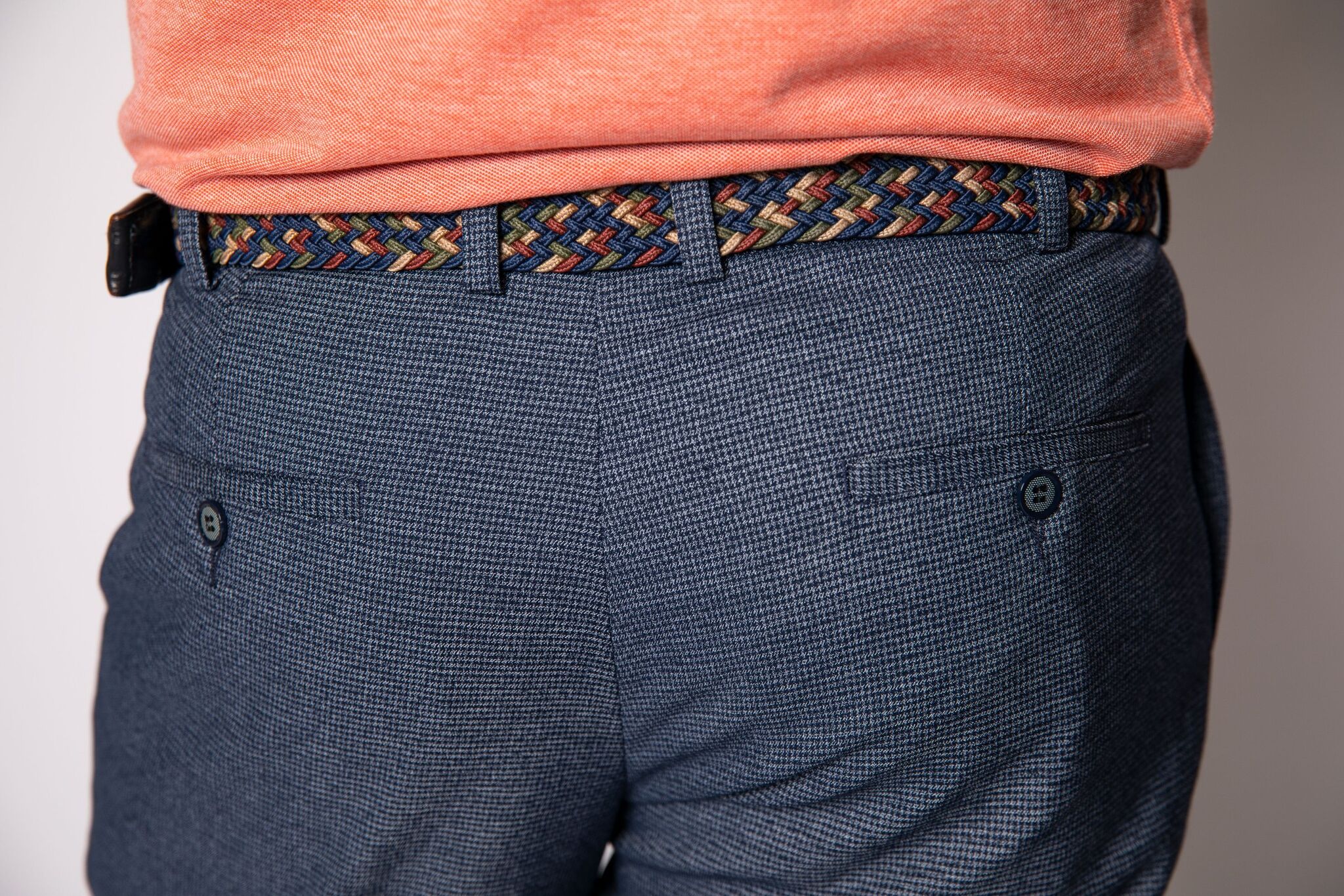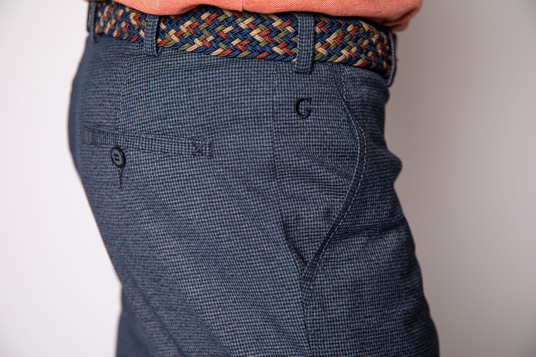 Мягкая плотная стрейчевая ткань, боковые косые карманы, 2 задних кармана.