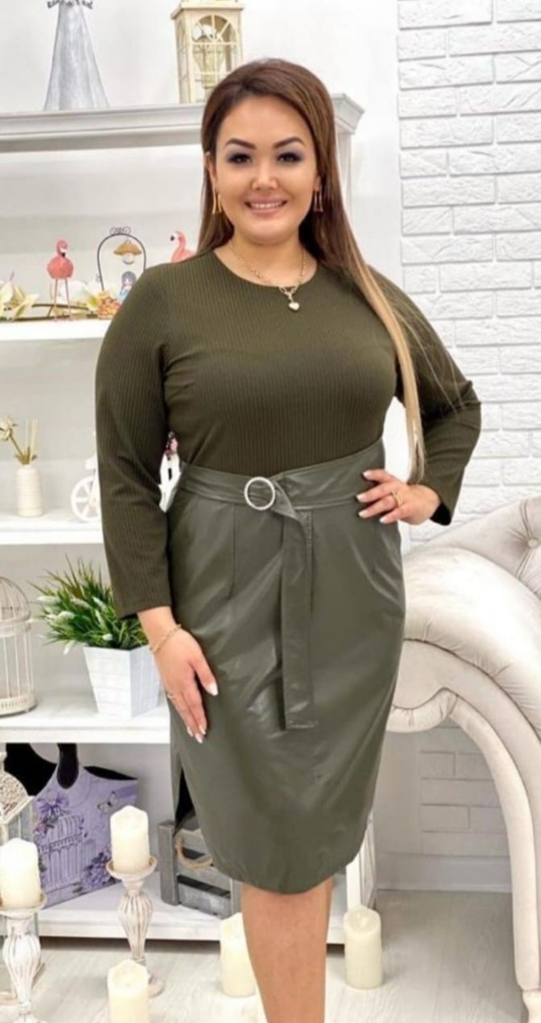 Стильное платье подойдёт как на каждый день, так и на любой праздник! Верх: мягкий трикотаж, юбка: экокожа, замечательно смотрится на любых бёдрах.