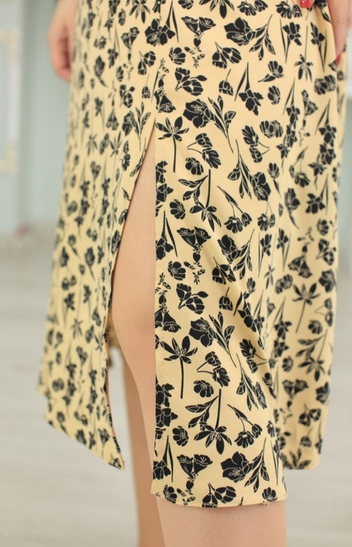 Стрейчевая ткань позволяет носить платье девушкам и женщинам разных фигур. Модная длина миди и небольшой разрез на ноге.