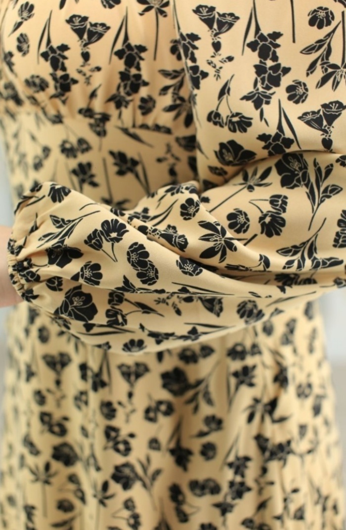 Лёгкое платье из мягкой шелковистой ткани подойдёт на любой сезон и случай жизни. Шнурок и резинка верхней части позволяют как скромно заикрыть плечи, так и игриво открыть. Манжет рукава также на резинке, поэтому его можно легко поднимать до локтя.