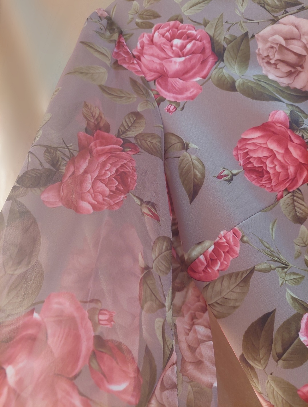 Шифоновые полупрозрачные рукава аналогичного принта делают модель ещё более модной и нарядной.