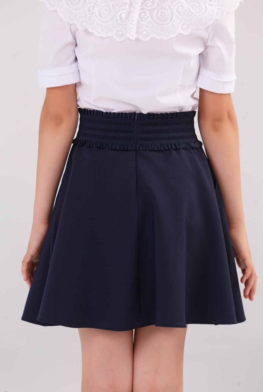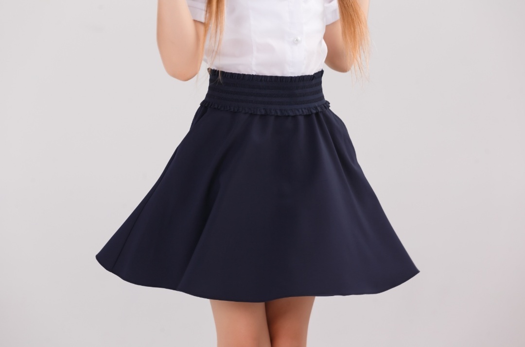 Юбка клёш солнце полусолнце синяя тёмно-синяя свободная на резинке школьная в школу